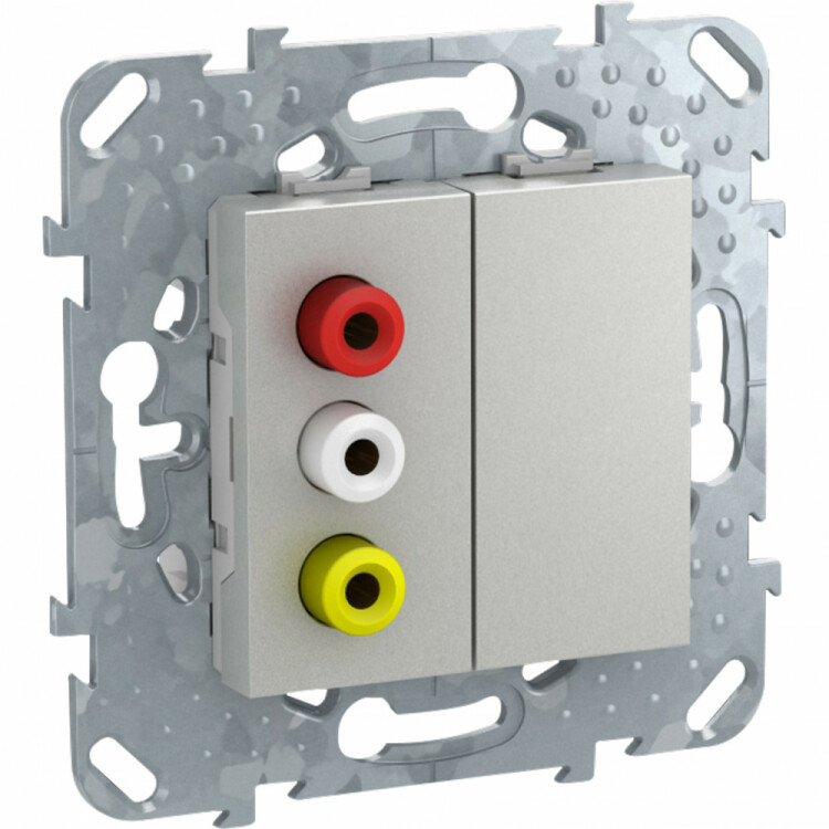 Розетка 3 RCA Schneider Electric UNICA ТОР (алюминий) для видеосигнала и стереофонического звука.