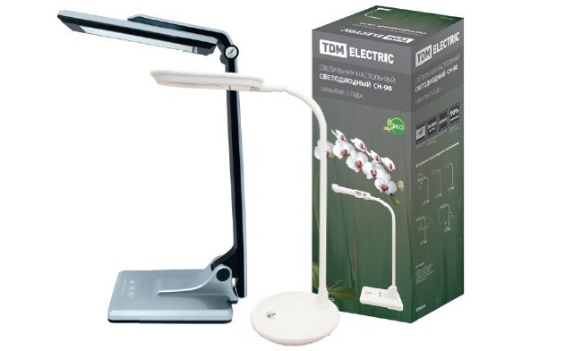 Светильник светодиодный настольный СН-90, гибкий, выключатель, 220 В, 5 Вт, 5300 К белый TDM (кр.1шт)