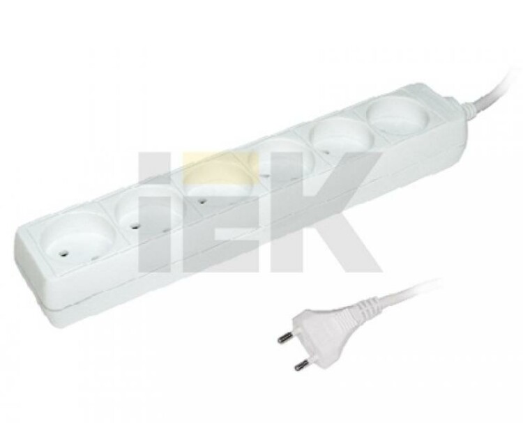 Удлинитель У6 6 мест 2Р/5метров 2х0.75мм2 10А/250 IEK (кр.6шт)