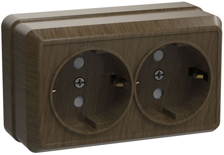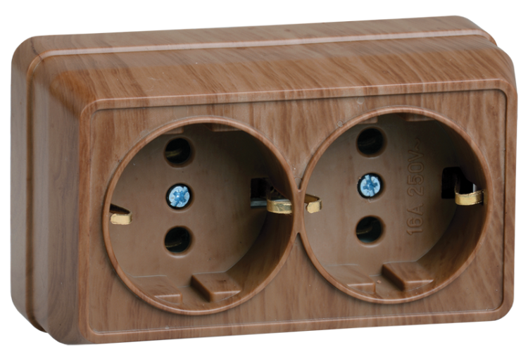 РС22-3-ОД Розетка 2местн. с з/к 16А откр.уст. ОКТАВА (дуб) (кр.18шт)