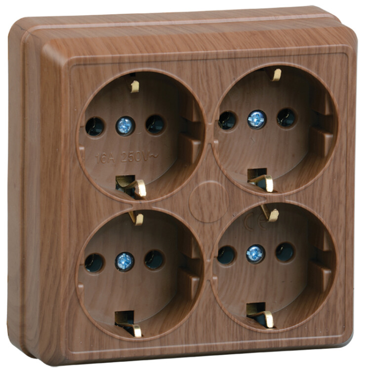 РС24-3-ОД Розетка 4местн. с з/к 16А откр.уст. ОКТАВА (дуб) (кр.16шт)