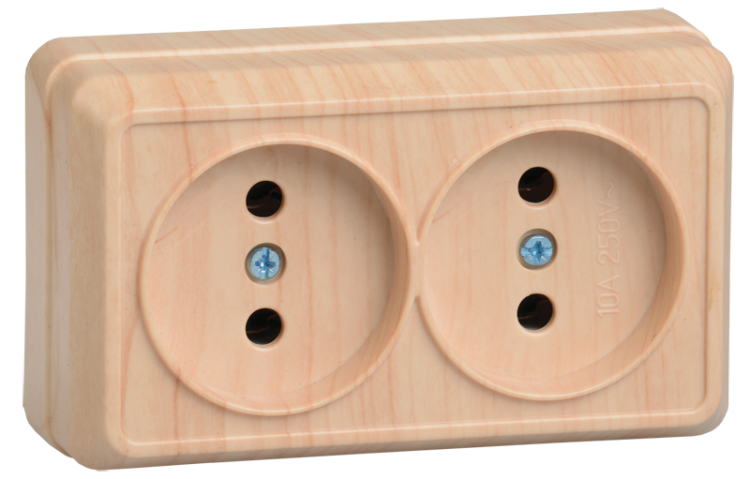 РС22-2-ОС Розетка 2местн. без з/к 10А откр.уст. ОКТАВА (сосна) (кр.24шт)