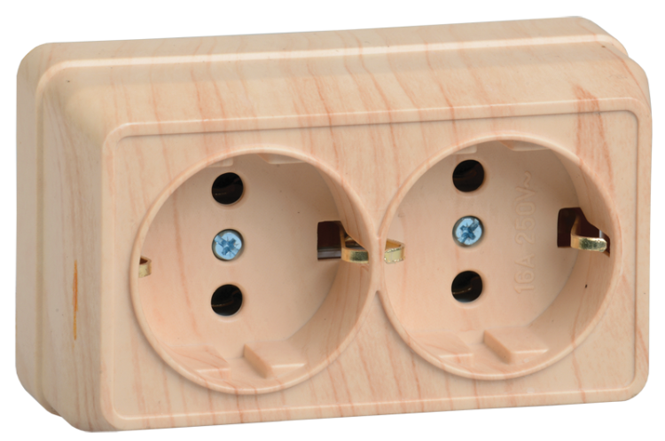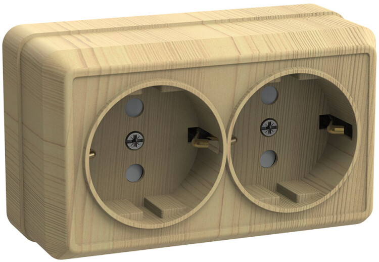 РС22-3-ОС Розетка 2местн. с з/к 16А откр.уст. ОКТАВА (сосна) (кр.18шт)