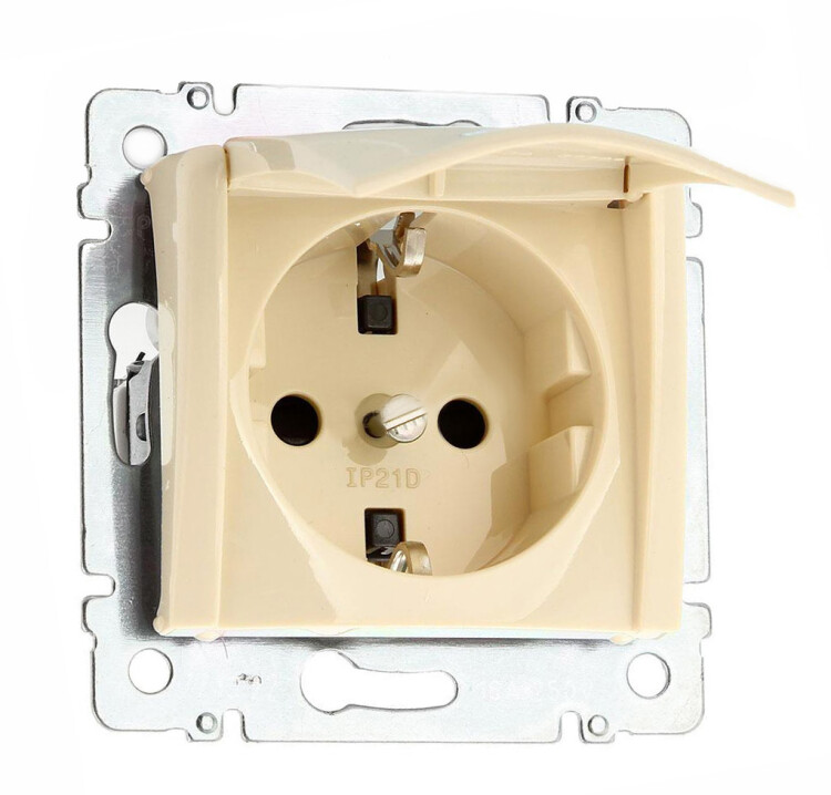 Розетка с заземлением - Legrand Valena - со шторками с защитной крышкой 16А 250В винтовые зажимы - слоновая кость