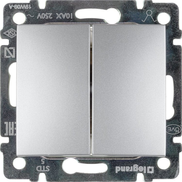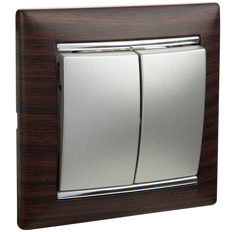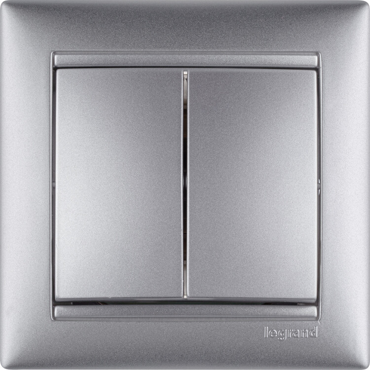 Выключатель двухклавишный - Legrand Valena - 10А 250В схема 5 безвинтовые зажимы - алюминий