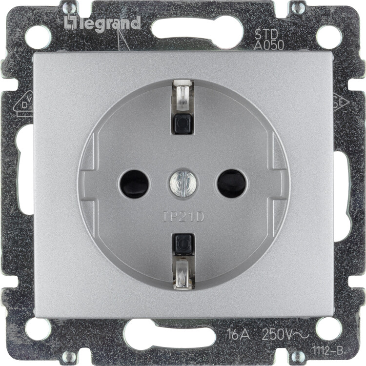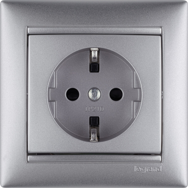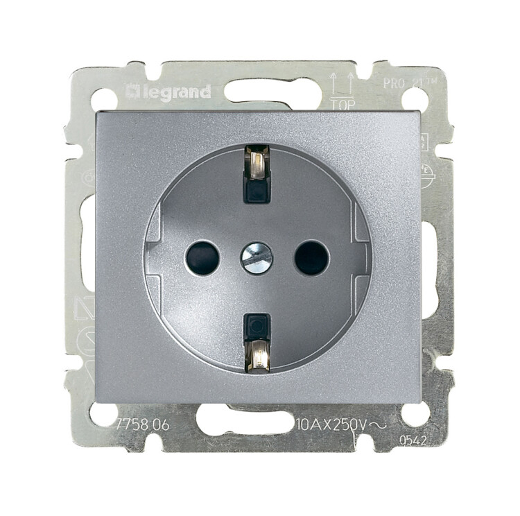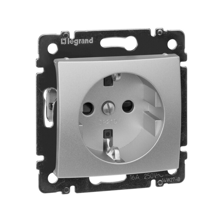 Розетка с заземлением - Legrand Valena - со шторками 16А 250В винтовые зажимы - алюминий