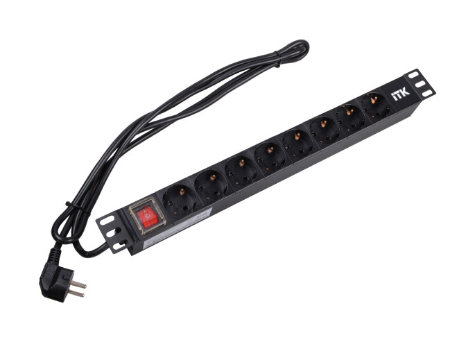 Горизонтальные 19" PDU от ITK прекрасно справляются с задачей по электроснабжению сетевого оборудования в шкафах и стойках, а также с требованием защиты от токов короткого замыкания и перенапряжения. Изготавливаются блоки розеток из высококачественных термостойких материалов и пластмасс, оснащаются выключателем со светоиндикацией и соответствуют российским и международным стандартам качества. Горизонтальные PDU соответствуют стандарту 19" (482,6 мм) и устанавливаются с помощью кронштейнов на 19" профиль, при этом положение кронштейнов можно менять.