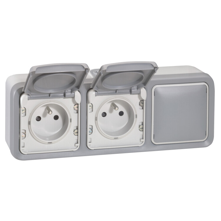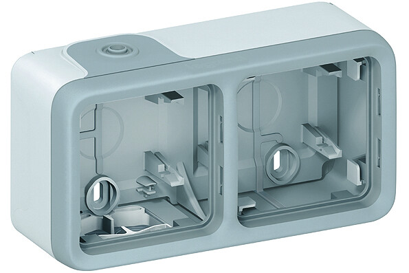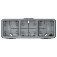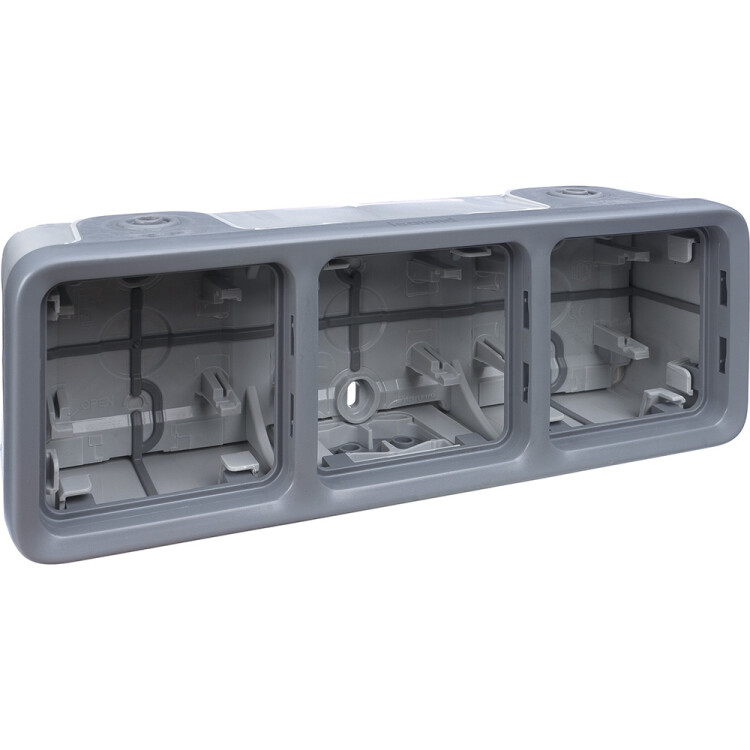 Трехместная монтажная коробка серии Plexo для горизонтальной установки нескольких механизмов открытого монтажа. Применяется в жилых, хозяйственных и технических помещениях, где требуется собрать несколько функций в одном корпусе.