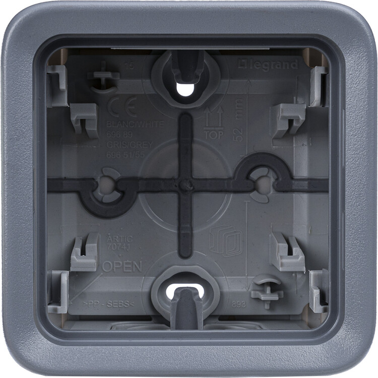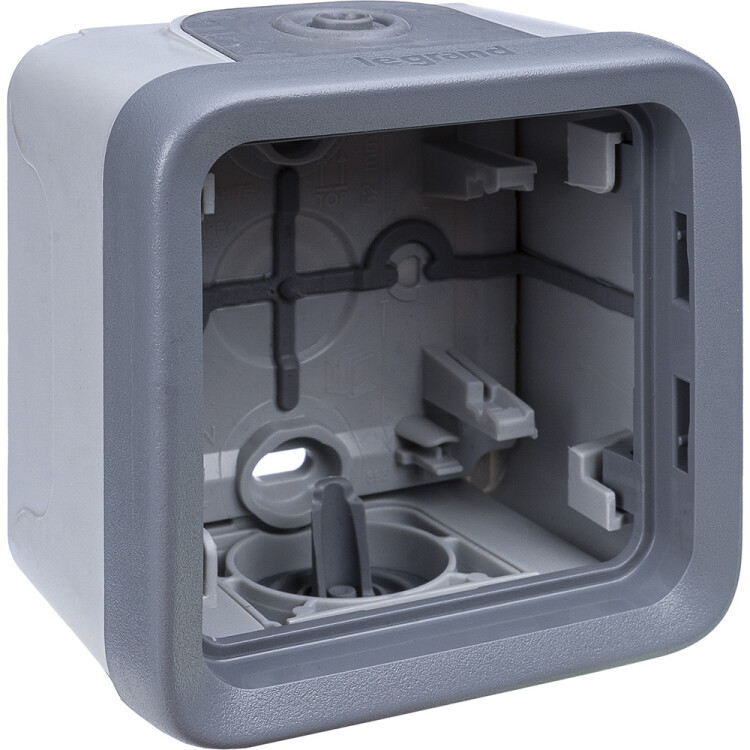 Коробка для накладного монтажа с мембранными сальниками - Программа Plexo - серый - 1 пост