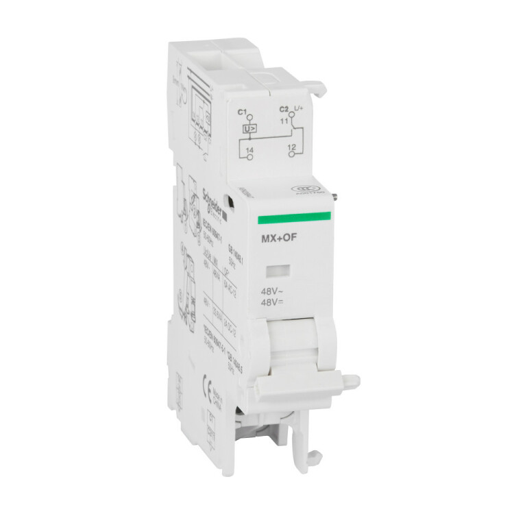 РАСЦЕПИТЕЛЬ iMX+iOF 48В ДЛЯ iDPN N, DPN N Vigi. Расцеп итель максимального напряжения MX+OF с контактом сигнализации положения and laquo;включено and ndash; отключено and raquo; снабжён контактом OF для сигнализации положения and laquo;включено and raquo; или and laquo;отключено and raquo; соответствующего аппарата. Аварийное отключение кнопкой с замыкающим контактом, дисстанционная сигнализация положения соответствующего аппарата.