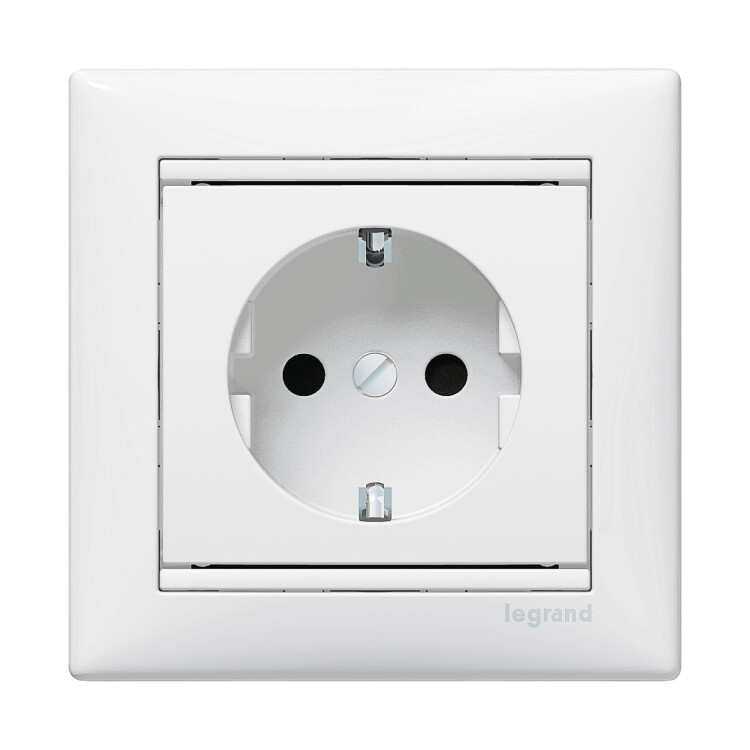 Розетка с заземлением - Legrand Valena - со шторками 16А 250В винтовые зажимы - белый