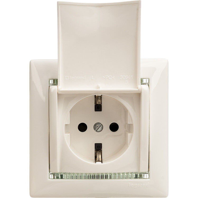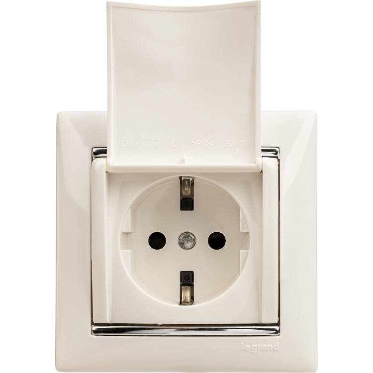 Розетка с заземлением - Legrand Valena - со шторками с защитной крышкой 16А 250В винтовые зажимы - белый