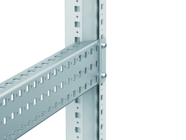 Крепится рейка к раме шкафа во внутренней плоскости и/или к другим рейкам.