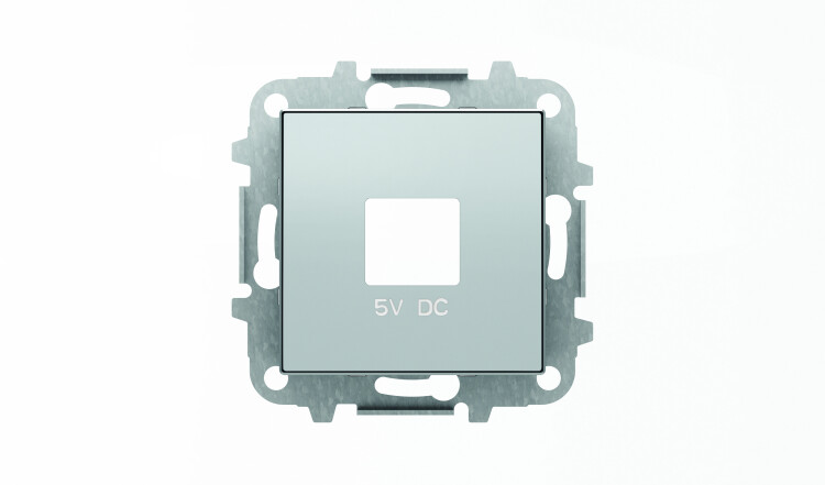 Накладка для механизмов зарядного устройства USB, арт.8185, серия SKY, цвет серебристый алюминий (кр.1шт)