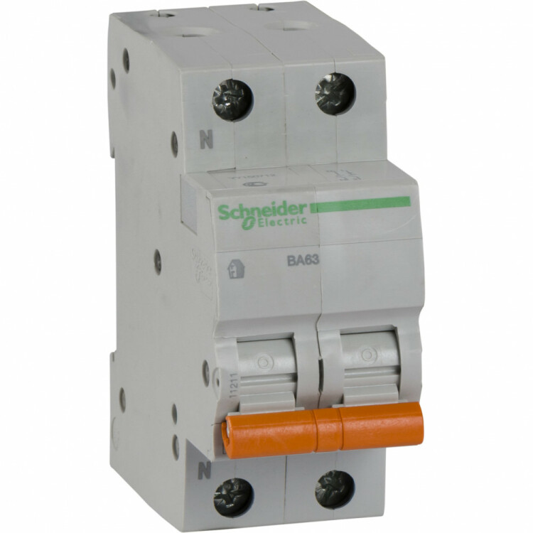 Автоматический выключатель ВА63 серии Домовой Schneider Electric, 1P + N, на номинальный ток 6А, характеристика С, с отключающей способностью 4500А, ширина 36 мм.