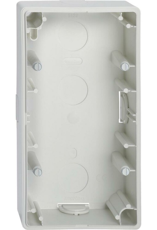Коробка для наружного монтажа Х2, белый. серия продукта: Merten M-Smart, Merten Artec - наименование: M-Smart, Artec - тип устройства или его аксессуаров: корпус для монтажа на поверхности - количество постов: 2-постовая - оттенок цвета: белоснежный - код цвета: RAL 9010. Преимущества: Merten Artec:, Изделия серии Artec внесут нотку элегантности и неповторимого стиля в помещение, Простые и чистые формы изделий полностью соответствуют современному образу жизни, Металлические выключатели серии Artec цвета алюминия или нержавеющей стали – идеальное решение для стильных интерьеров, Комбинируя центральные элементы и рамки различных цветов, можно добиться впечатляющих результатов при отделке помещения. Merten Antique:, Элегантный и роскошный дизайн отвечает высочайшим эстетическим требованиям и превосходно вписывается в изысканный классический интерьер, Впечатляет не только уникальный дизайн этой серии, привносящий в интерьер нотки аристократизма и утонченности. Технические возможности серии Antique позволяют воплотить любые желания и сделать дом по-настоящему комфортным и безопасным.. применения: - Серия Merten Antique применяется в жилых зданиях любого типа, Серия Merten Artec разработаны для любых типов жилых зданий, а также для школ, офисов, гостиниц.. Преимущества: Безграничные возможности Merten System M. Основой изделий являются высококачественные механизмы скрытого монтажа. Они отличаются высокой гибкостью использования и разнообразием выполняемых функций: это электрические розетки, клавишные и кнопочные выключатели, устройства управления рольставнями и регуляторы температуры, а также телефонные, ТВ/аудио и компьютерные розетки, датчики движения и присутствия, термостаты, светорегуляторы и реле времени, компоненты радиосистемы и системы автоматизации KNX. Merten System M удовлетворяет всем требованиям и успешно решает любые задачи.... применения: Изделия Merten System M подходят для жилых и нежилых помещений. Их устанавливают в школах, офисах, больницах или отелях., Инновационные функции для классических электрических установок, Выполнение функций интеллектуального интерфейса для работы с KNX, Обеспечение комфорта, безопасности и эффективности использования электроэнергии, Возможность простой и гибкой модернизации с System M и системой RF..