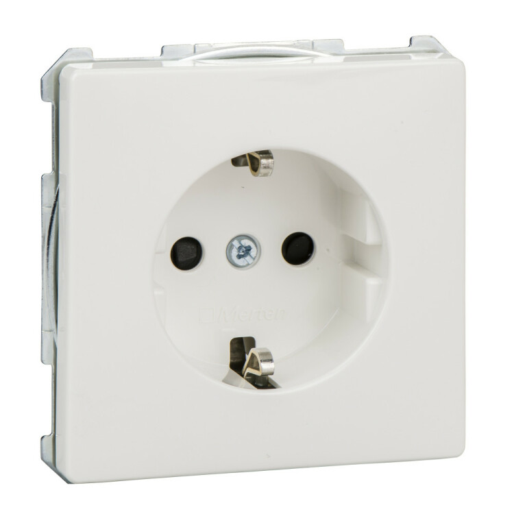 Розетка Shneider Electric Merten SD SCHUKO (бежевый) с з/k и шторками подходит для сетей 250 В и тока 16 А.