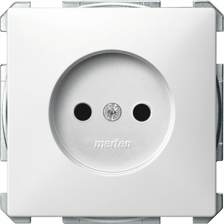 Розетка Shneider Electric Merten SD (белый) без з/k со шторками подходит для сетей 250 В и тока 16 А.