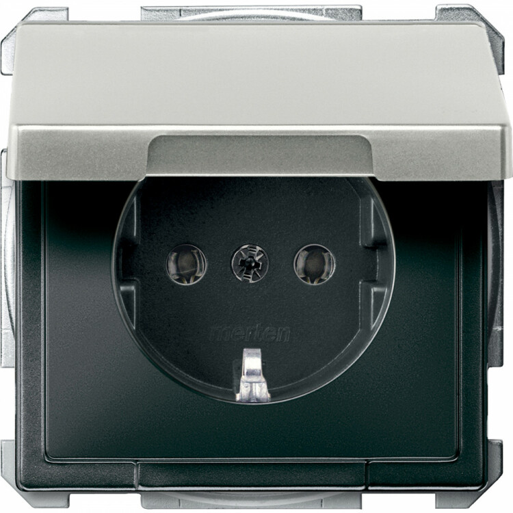 Розетка Shneider Electric Merten SD SCHUKO (бежевый) с з/k без шторок с крышкой и полем для надписи подходит для сетей 250 В и тока 16 А.