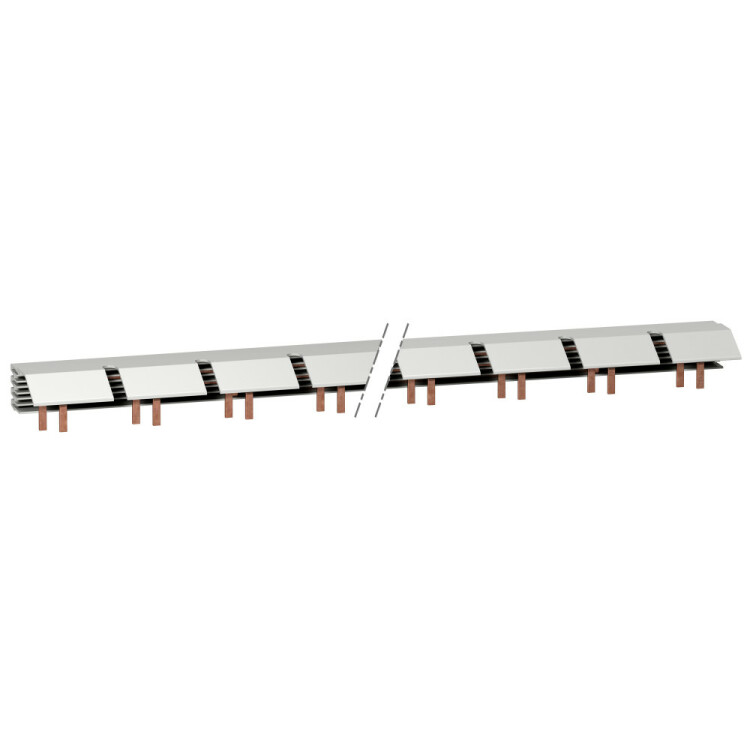 ШИНКА ГРЕБЕНЧАТАЯ 3П+H ДЛЯ DPN Vigi (NL1NL2NL3...(ШАГ9ММ)) 56 МОД.18ММ 80А РАЗР.. Подключение модульных устройств iDPN, iDPN Vigi и DPN N Vigi возможно с помощью гребенчатых шинок шириной 9 мм. В специальных гребенчатых шинках для автоматических выключателей предусмотрен промежуток 9 мм для вставки вспомогательных контактов iOF, iSD, iOF/SD+OF. Гребенчатые шинки для автоматических выключателей 3P+N и вспомогательных устройств совместимы с распределительными щитами Prisma.
