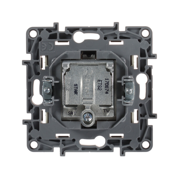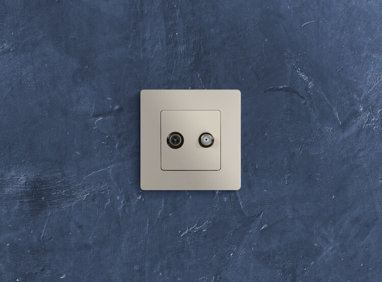 - Присоединение коаксиальных кабелей к розетке осуществляется удобным безвинтовым коннектором.