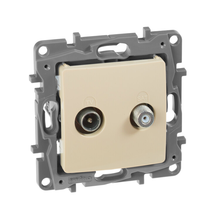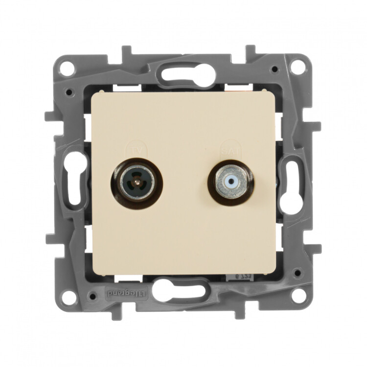 ТВ-Спутниковая розетка двухкабельная Legrand Etika тип "звезда", цвет слоновая кость,скрытого монтажа, имеет два независимых входа и выхода для подключения эфирного и спутникового телевидения. Позволяет добавить подключение спутникового ТВ без изменения существующей структуры эфирного ТВ, простой заменой розетки