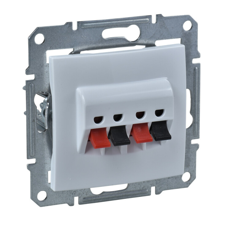 Аудио розетка х2, бел.. серия продукта: Sedna - тип устройства или его аксессуаров: гнездо для громкоговорителя - при соединения: безвинтовые зажимы - код цвета: RAL 9003. Преимущества: Sedna, профессиональная серия ЭУИ, которую по праву оценили электрики. Она имеет ряд преимуществ в удобстве и трудоемкости монтажа:.. применения: Гражданское и жилищное строительство..