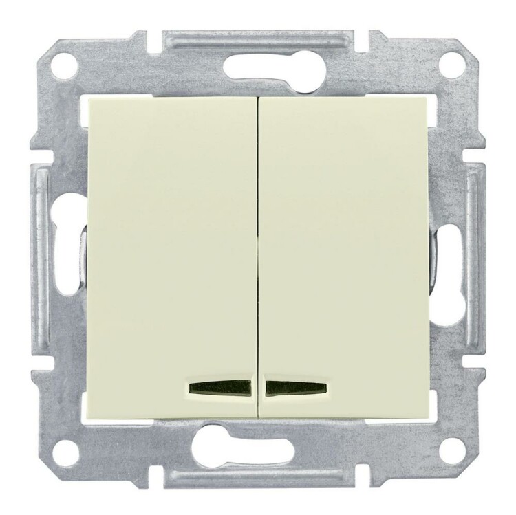 Выключатель 2=клавишный cx.5 с синей подсветкой, бежевый. серия продукта: Sedna - область применения: управление - тип устройства или его аксессуаров: выключатель. Преимущества: Sedna, профессиональная серия ЭУИ, которую по праву оценили электрики. Она имеет ряд преимуществ в удобстве и трудоемкости монтажа:.. применения: Гражданское и жилищное строительство..