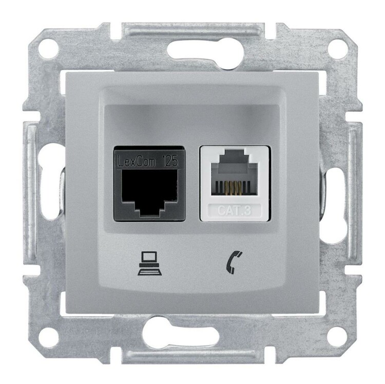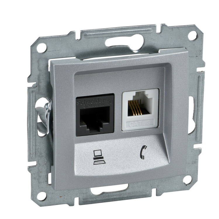 Телефонная-компьютерная розетка катушка 5е неэкранированная UTP, алюминий. тип устройства или его аксессуаров: р озетка для подкл. телефона/компьютера - тип телефонного розетки: RJ11. Преимущества: Sedna, профессиональная серия ЭУИ, которую по праву оценили электрики. Она имеет ряд преимуществ в удобстве и трудоемкости монтажа:.. применения: Гражданское и жилищное строительство..