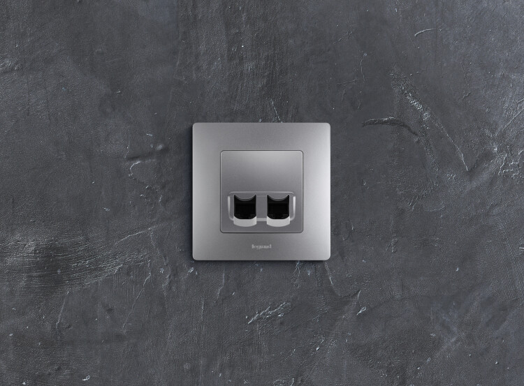 Розетка компьютерная двойная RJ45 категория 5e UTP - Legrand Etika - алюминий