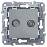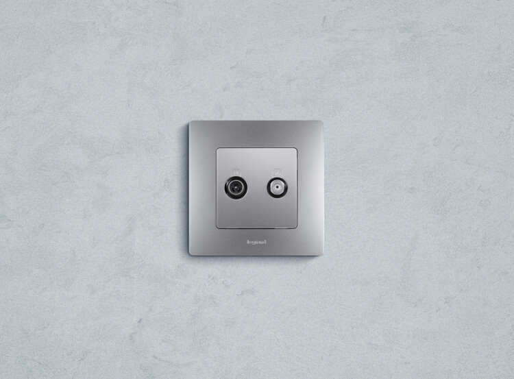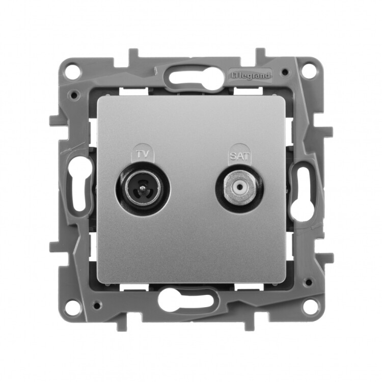 ТВ-Спутниковая розетка тип "звезда" Legrand Etika, цвет алюминий,скрытого монтажа, имеет два независимых входа и выхода для подключения эфирного и спутникового телевидения. Позволяет добавить подключение спутникового ТВ без изменения существующей структуры эфирного ТВ, простой заменой розетки