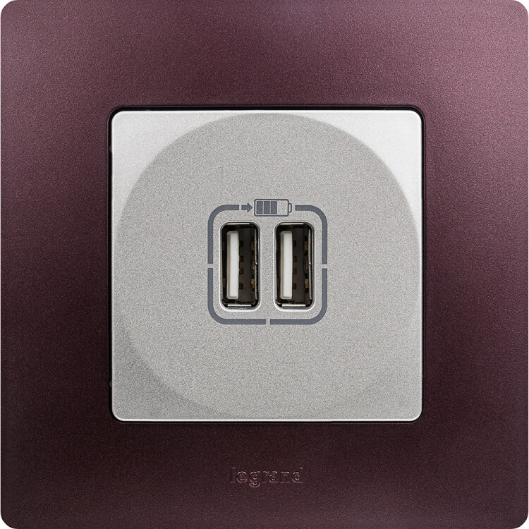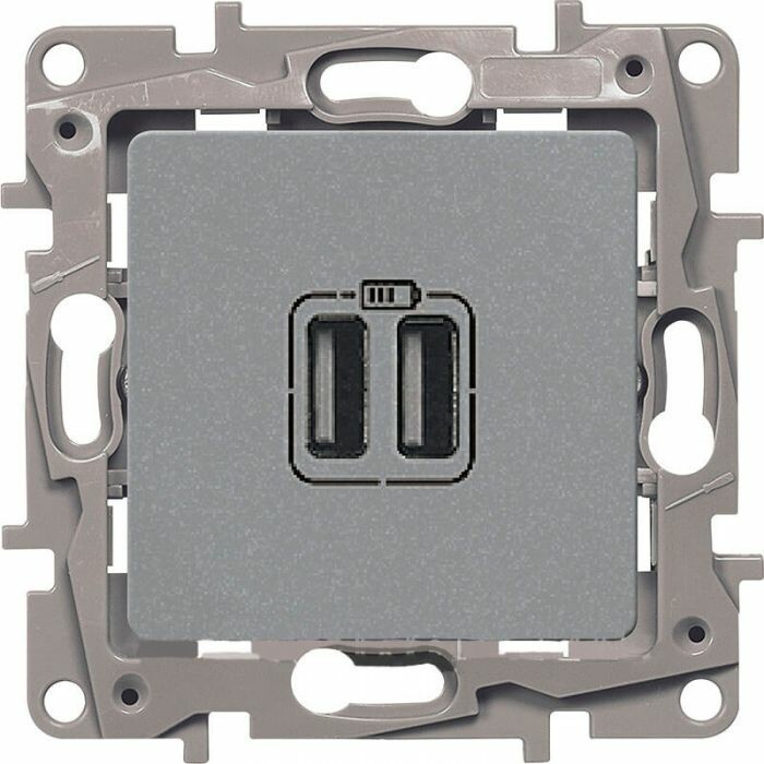 Зарядное устройство USB тип А / тип А - Legrand Etika - 3000мА 15Вт - алюминий