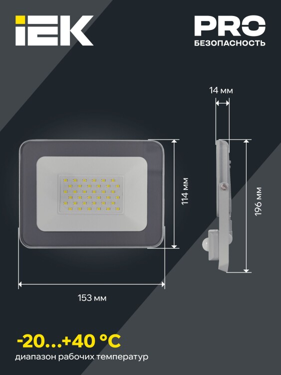 Прожектор СДО 07-30Д светодиодный серый с ДД IP54 IEK (кр.1шт)