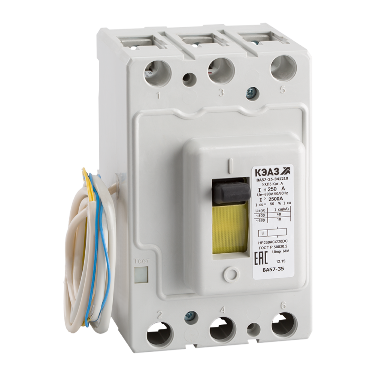 Блочный автоматическ ий 3 полюсный выключатель постоянного тока с предельной коммутационной способностью при постоянном токе кА на номинальный ток 125 А .