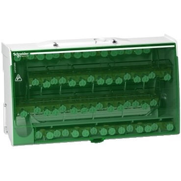 РАСПРЕДЕЛИТЕЛЬНЫЙ БЛОК ВИНТОВОЙ 4П 125А 60 ОТВЕРСТИЙ. Четырехполюсные распределительные блоки устанавливаются на DIN-рейке или на монтажной плате. Совместимы с распределительными щитами серий Prisma G и P, Pragma, Mini Pragma. Входящие и отходящие цепи подключены к клеммным колодкам с винтовыми зажимами с помощью как гибких, так и жестких кабелей с наконечниками.