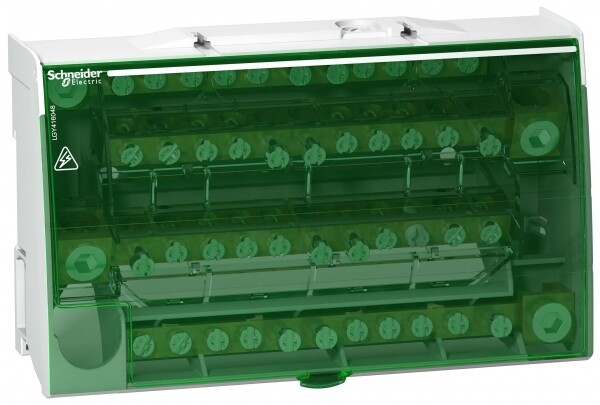 РАСПРЕДЕЛИТЕЛЬНЫЙ БЛОК ВИНТОВОЙ 4П 160А 48 ОТВЕРСТИЙ. Четырехполюсные распределительные блоки устанавливаются на DIN-рейке или на монтажной плате. Совместимы с распределительными щитами серий Prisma G и P, Pragma, Mini Pragma. Входящие и отходящие цепи подключены к клеммным колодкам с винтовыми зажимами с помощью как гибких, так и жестких кабелей с наконечниками.
