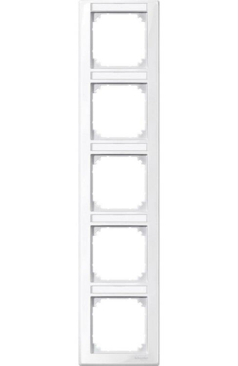 Рамка с полем для надписи ВЕРТИК 5 ПОСТОВ. наименование: M-Smart - тип устройства или его аксессуаров: рамка - код цвета: RAL 9010. Преимущества: Безграничные возможности Merten System M. Основой изделий являются высококачественные механизмы скрытого монтажа. Они отличаются высокой гибкостью использования и разнообразием выполняемых функций: это электрические розетки, клавишные и кнопочные выключатели, устройства управления рольставнями и регуляторы температуры, а также телефонные, ТВ/аудио и компьютерные розетки, датчики движения и присутствия, термостаты, светорегуляторы и реле времени, компоненты радиосистемы и системы автоматизации KNX. Merten System M удовлетворяет всем требованиям и успешно решает любые задачи.... применения: Изделия Merten System M подходят для жилых и нежилых помещений. Их устанавливают в школах, офисах, больницах или отелях., Инновационные функции для классических электрических установок, Выполнение функций интеллектуального интерфейса для работы с KNX, Обеспечение комфорта, безопасности и эффективности использования электроэнергии, Возможность простой и гибкой модернизации с System M и системой RF..