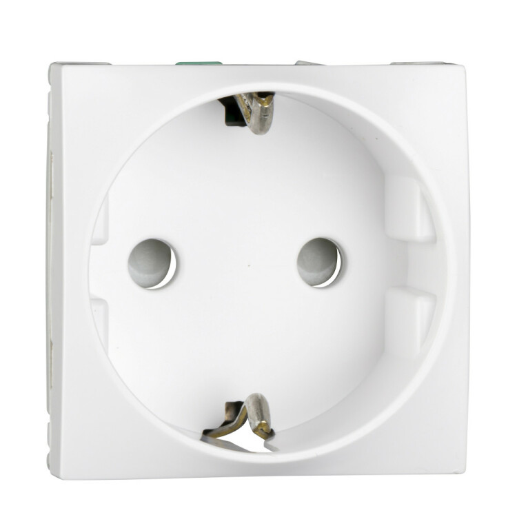 Розетка одинарная Altira Schneider Electric (цвет белый RAL9003) с заземлением и шторками подходит для сетей 250 В, на ток 16 А.