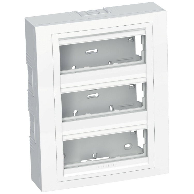 Коробка горизонтальная Altira Schneider Electric (цвет белый RAL9003) для наружного монтажа с рамкой для 9 механизмов (3х3 ряда).
