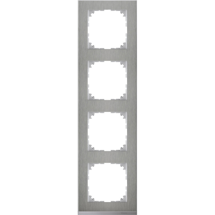 M-Pure Dcor 4-постовая рамка, нержавеющая сталь/цвет алюминия. наименование: M-Pure Decor - тип устройства или его аксессуаров: рамка. Преимущества: Безграничные возможности Merten System M. Основой изделий являются высококачественные механизмы скрытого монтажа. Они отличаются высокой гибкостью использования и разнообразием выполняемых функций: это электрические розетки, клавишные и кнопочные выключатели, устройства управления рольставнями и регуляторы температуры, а также телефонные, ТВ/аудио и компьютерные розетки, датчики движения и присутствия, термостаты, светорегуляторы и реле времени, компоненты радиосистемы и системы автоматизации KNX. Merten System M удовлетворяет всем требованиям и успешно решает любые задачи.... применения: Изделия Merten System M подходят для жилых и нежилых помещений. Их устанавливают в школах, офисах, больницах или отелях., Инновационные функции для классических электрических установок, Выполнение функций интеллектуального интерфейса для работы с KNX, Обеспечение комфорта, безопасности и эффективности использования электроэнергии, Возможность простой и гибкой модернизации с System M и системой RF..