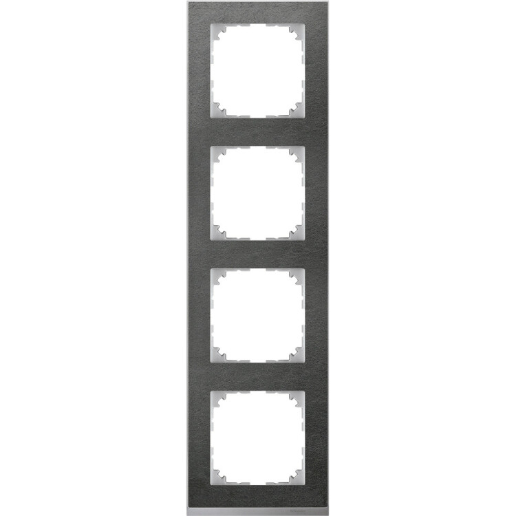 M-Pure Dcor 4-постовая рамка, сланец/цвет алюминия. наименование: M-Pure Decor - тип устройства или его аксессуаров: рамка. Преимущества: Безграничные возможности Merten System M. Основой изделий являются высококачественные механизмы скрытого монтажа. Они отличаются высокой гибкостью использования и разнообразием выполняемых функций: это электрические розетки, клавишные и кнопочные выключатели, устройства управления рольставнями и регуляторы температуры, а также телефонные, ТВ/аудио и компьютерные розетки, датчики движения и присутствия, термостаты, светорегуляторы и реле времени, компоненты радиосистемы и системы автоматизации KNX. Merten System M удовлетворяет всем требованиям и успешно решает любые задачи.... применения: Изделия Merten System M подходят для жилых и нежилых помещений. Их устанавливают в школах, офисах, больницах или отелях., Инновационные функции для классических электрических установок, Выполнение функций интеллектуального интерфейса для работы с KNX, Обеспечение комфорта, безопасности и эффективности использования электроэнергии, Возможность простой и гибкой модернизации с System M и системой RF..