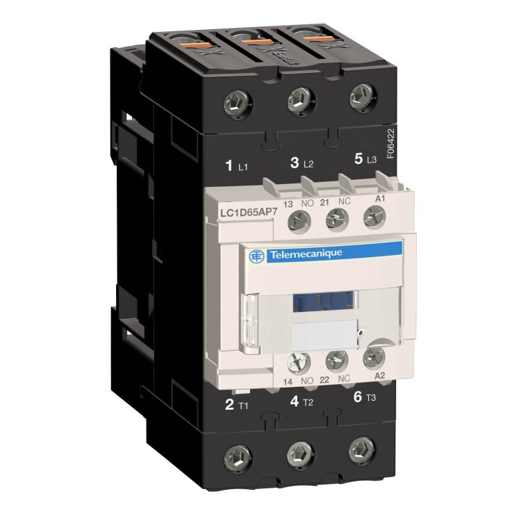 Контактор серии TeSys LC1D Schneider Electric - 3P (3НО) - номинальный ток 65 А (AC-3) - напряжение управления 230 В пер. тока 50/60 Гц - доп.контакты - 1НЗ+1НО - монтаж - на панель или DIN-рейку - присоединения - разъёмы EverLink + винтовые зажимы.Контакторы серии TeSys D имеют высокую надежность, длительную механическую и электрическую износостойкость, а также самый широкий спектр аксессуаров для всех типов