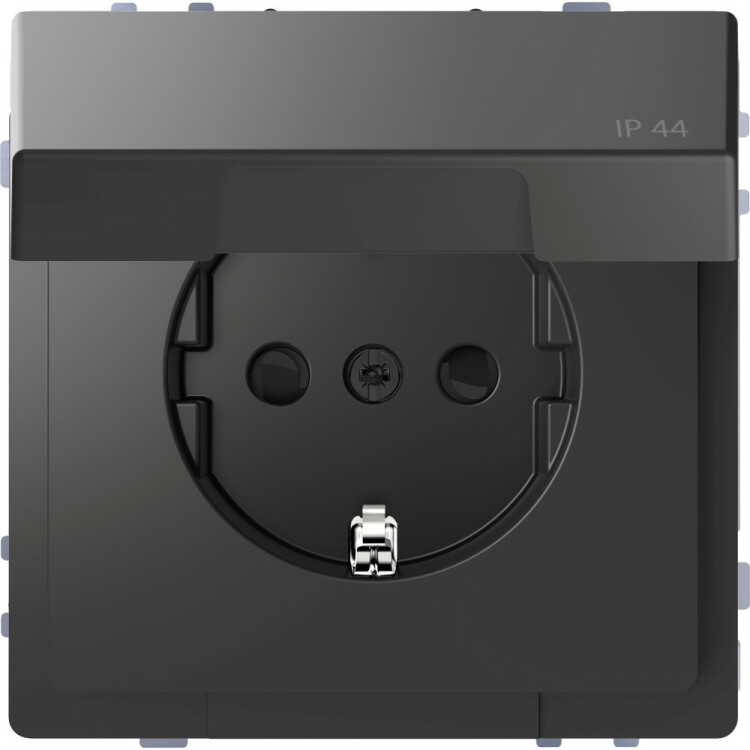 Розетка Schneider Electric Merten серии D-Life QuickFlex SCHUKO (антрацит, скрытая установка) с безвинтовыми зажимами одинарная с заземлением, шторками и защитной крышкой предназначена для применения в сетях до 250В, на ток до 16А. Степень защиты IP44. Шторки обеспечивают дополнительную безопасность в доме, где находятся дети.