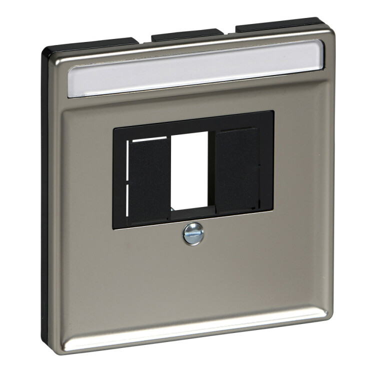 Центральная плата Shneider Electric Merten SD (алюминий) с прямоугольным отверстием с полем для надписи.