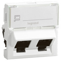 Двойная информационная розетка Mosaic для организации двух сетевых портов в одном посадочном месте. Применяется в структурированных кабельных системах офисов, учебных и коммерческих объектов, обеспечивает надежное подключение сетевого оборудования и рабочих мест.