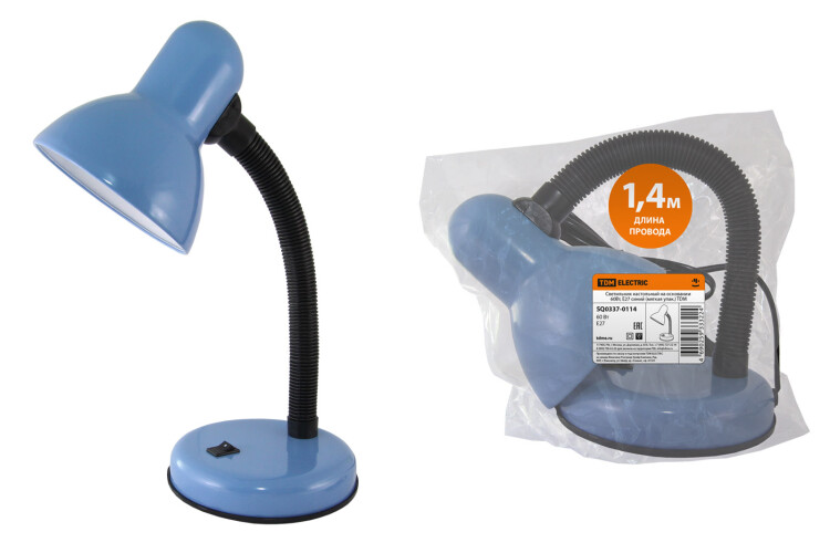 Светильник настольный на основании 60Вт, E27 синий (мягкая упак.) TDM (кр.10шт)