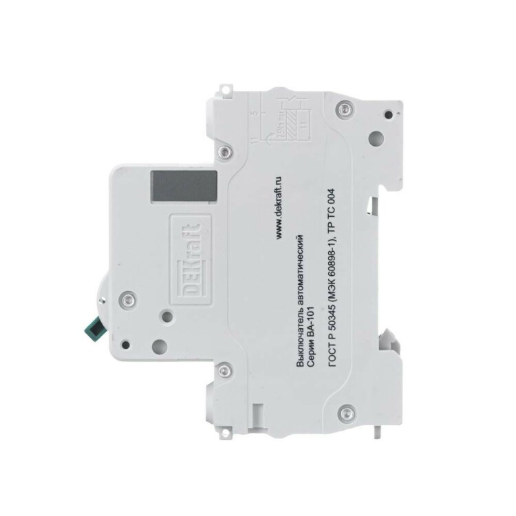 Автоматический выключатель серии ВА-101 Dekraft; 1P; номинальный ток 32 А; характеристика С; отключающая способность 4,5 кА. 5 монолитных заклепок повышают прочность корпуса аппарата. Сплошная лицевая панель обеспечивает безопасность эксплуатации аппарата. Боковые каналы охлаждения повышают стабильность работы при высоких температурах окружающей среды. Есть возможность установки доп олнительных аксессуаров с левой стороны устройства. Аппарат на 100% совместим с корпусами Dekraft и Systeme Electric.