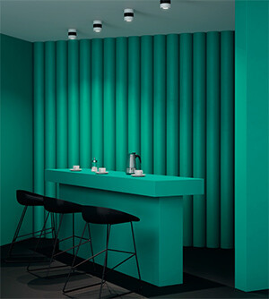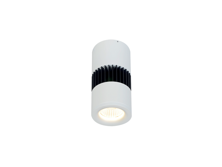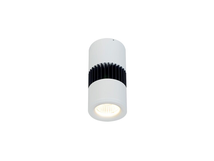 Потолочный светильник направленного света. Корпус светильника изготовлен из алюминия, окрашенного белой матовой краской, радиатор окрашен матовой краской черного цвета. Оптическая часть закрыта темперированным стеклом.