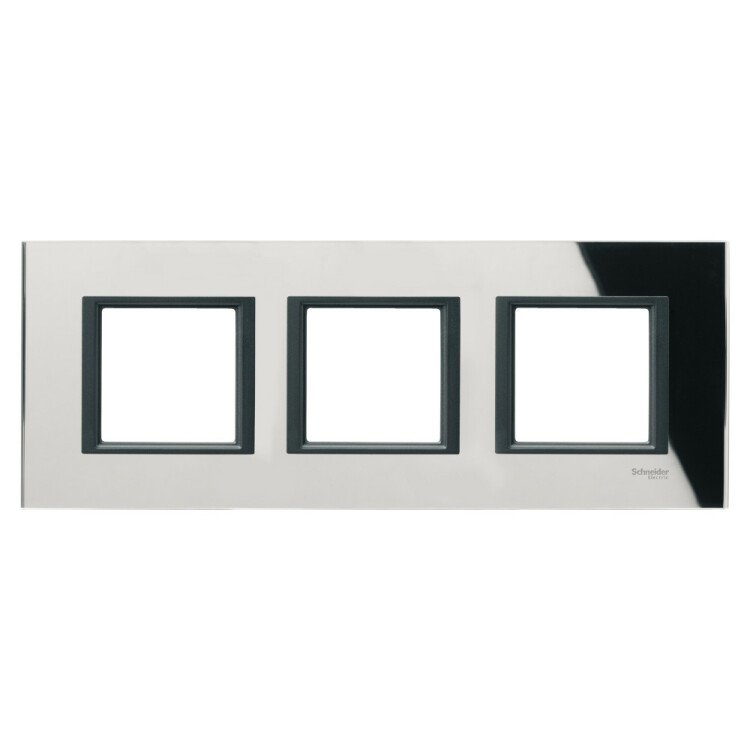 Рамка Schneider Electric UNICA CLASS (чёрное стекло) трёхместная, устанавливается в вертикальном или в горизонтальном положениях.