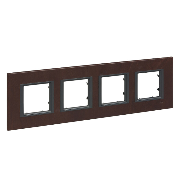 Рамка Schneider Electric UNICA CLASS (тёмная кожа) четырёхместная, устанавливается в вертикальном или в горизонтальном положениях.